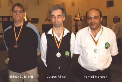 | Platz | Name | Verein | Pkt. | Bälle | Aufn. | GD | BED |