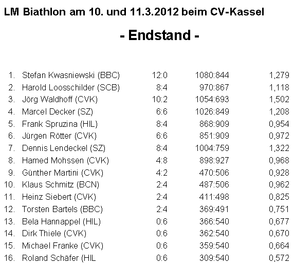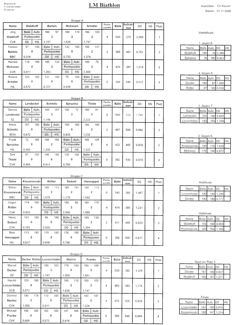 Turnierort: CV Kassel (CVK), Teilnehmerzahl: 16