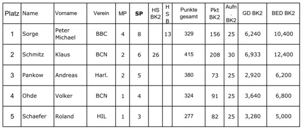 Turnierort: Braunschweiger Billard Club (BBC), Teilnehmerzahl: 5