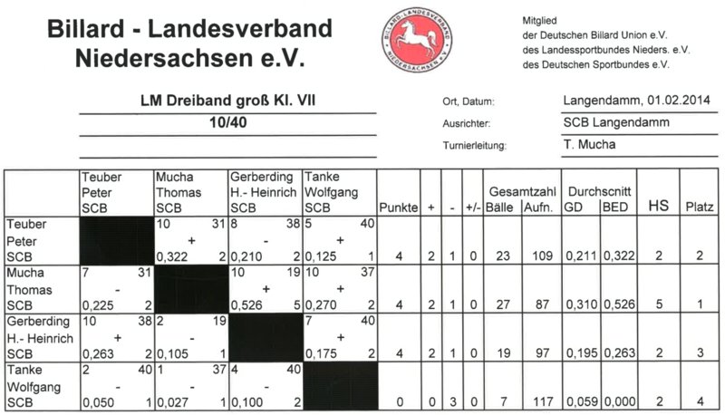 | 01.02.2014: LM Dreiband Kl.VII (großer Tisch) |