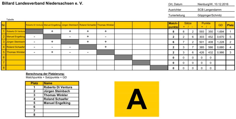 Turnierort: Sport Club Bergheide, Langendamm (SCB), Teilnehmerzahl: 10