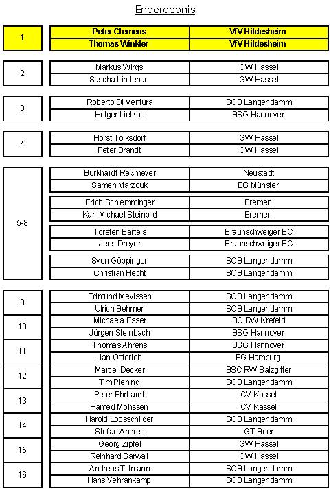 Turnierort: Sport Club Bergheide (SCB), Teilnehmerzahl: