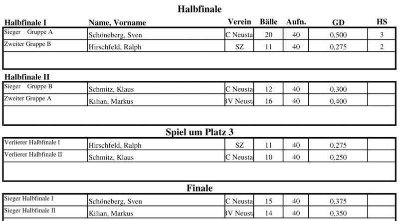 | 19.01.2013: LM Dreiband Kl.V (großer Tisch) |