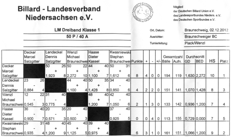 | 02.12.2012: LM Dreiband Kl.1 (kleiner Tisch) |