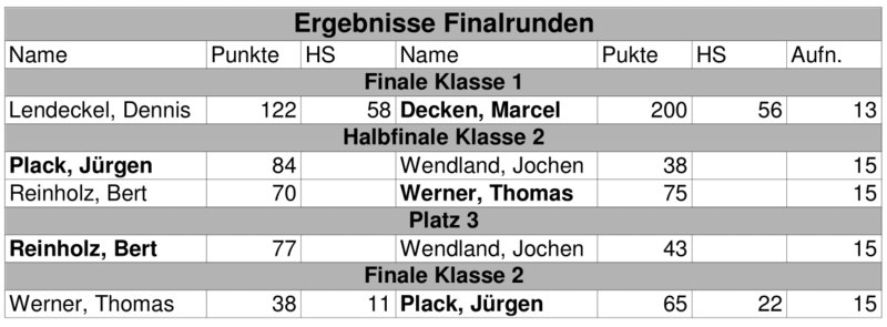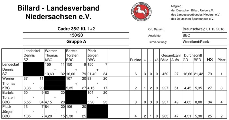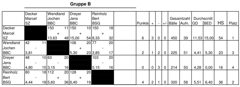 Turnierort: Braunschweiger Billard Club (BBC), Teilnehmerzahl: 8