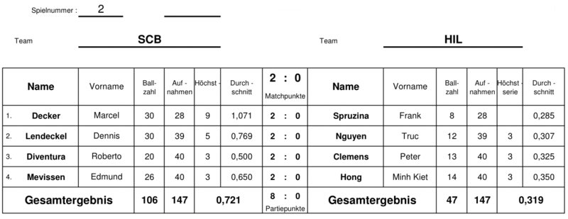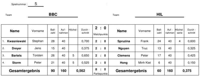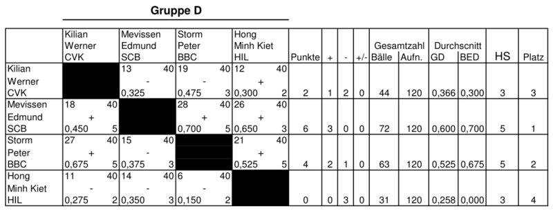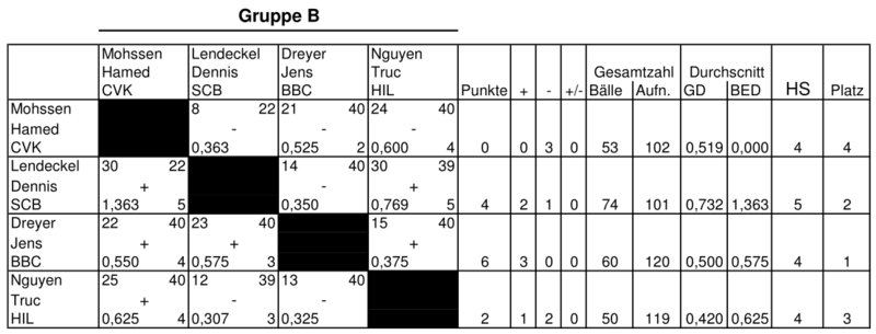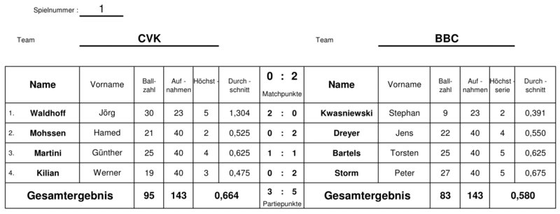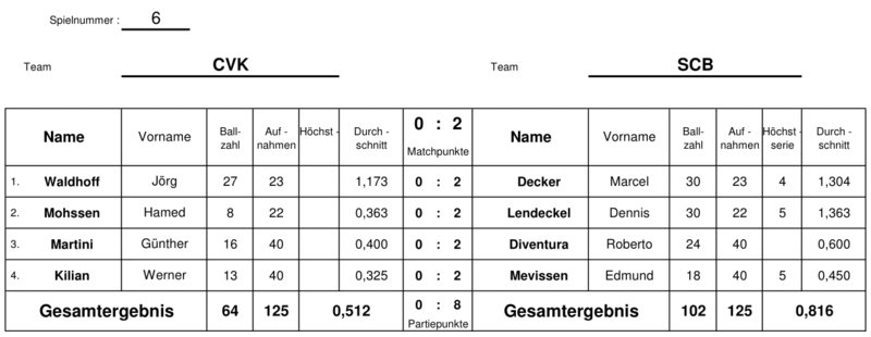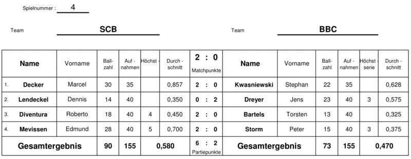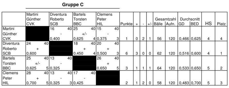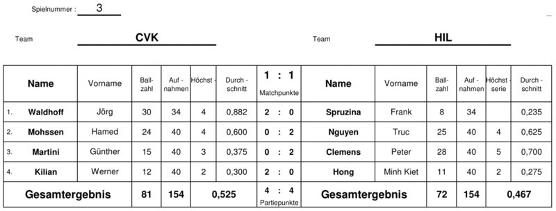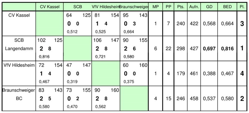 Turnierort: Carambolage Verein Kassel (CVK), Teilnehmerzahl: 4 Mannschaften