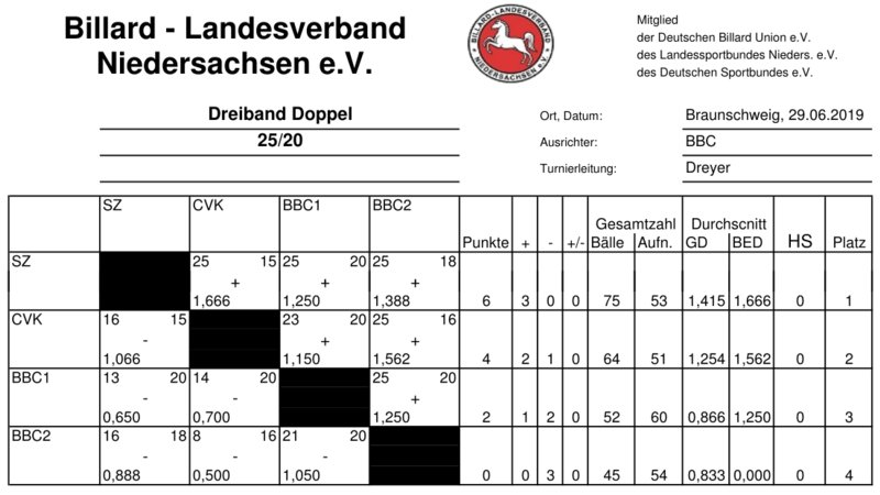 | 29.06.2019: LM Dreibandpokal (großer Tisch) |