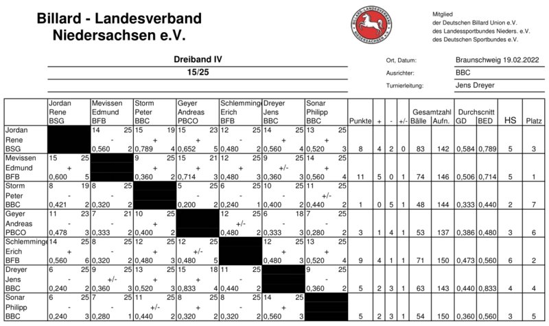 | 19.02.2022: LM Dreiband Kl.IV (großer Tisch) |
