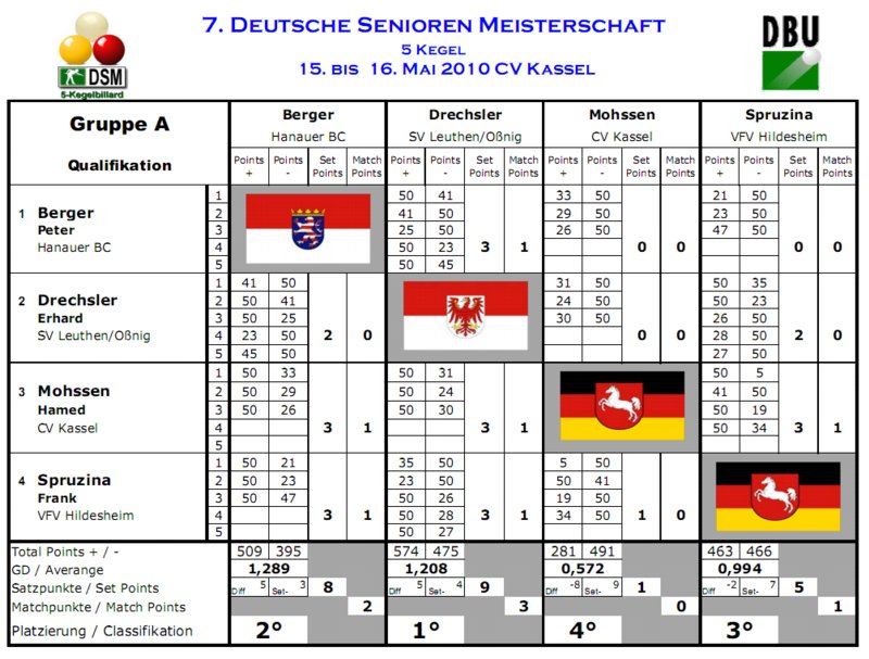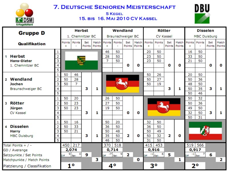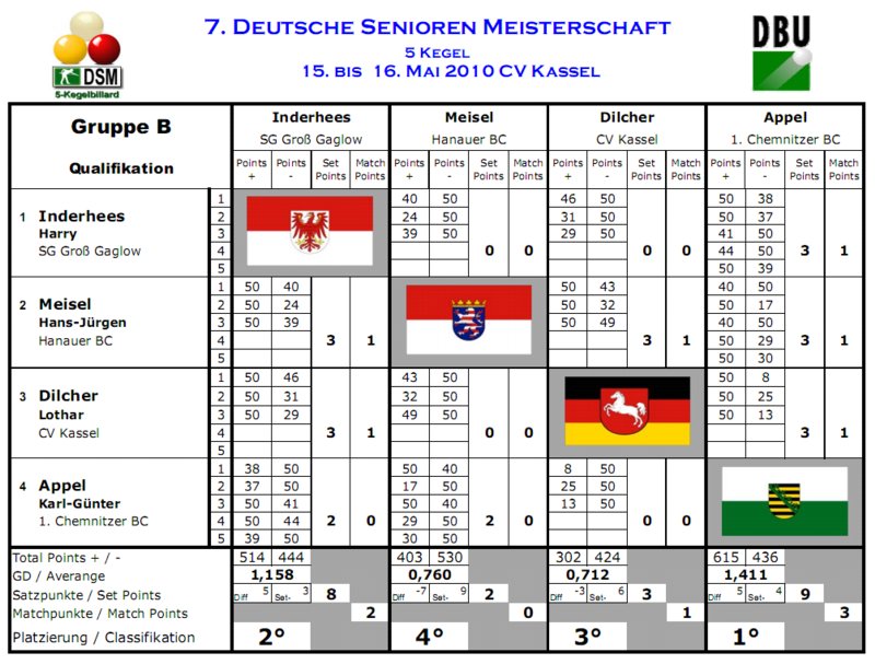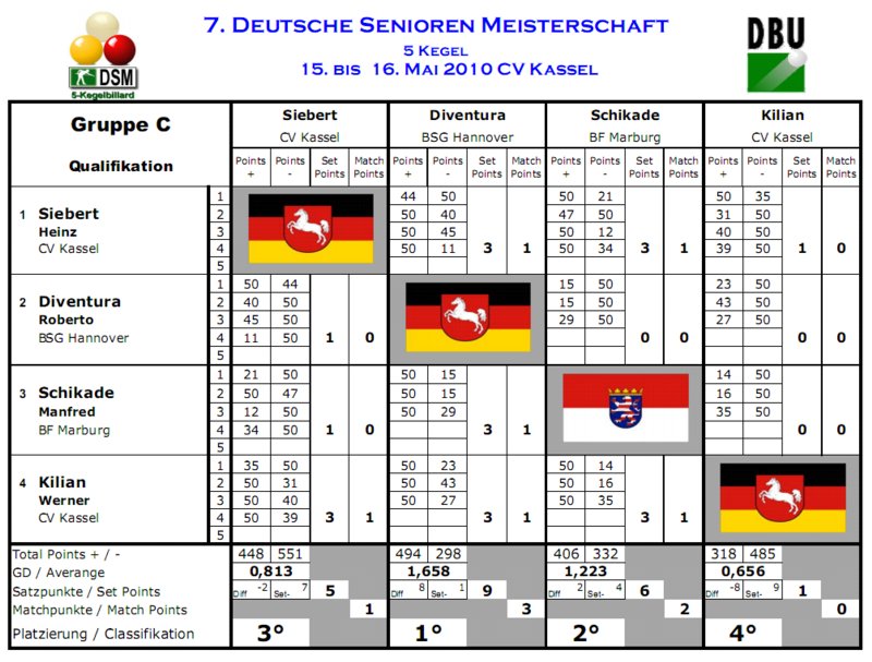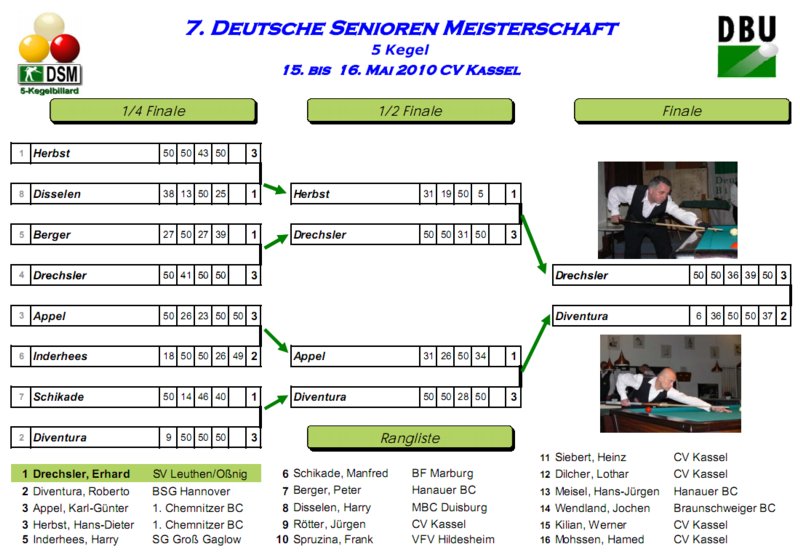 Turnierort: Carambolage Verein Kassel (CVK), Teilnehmerzahl: 16